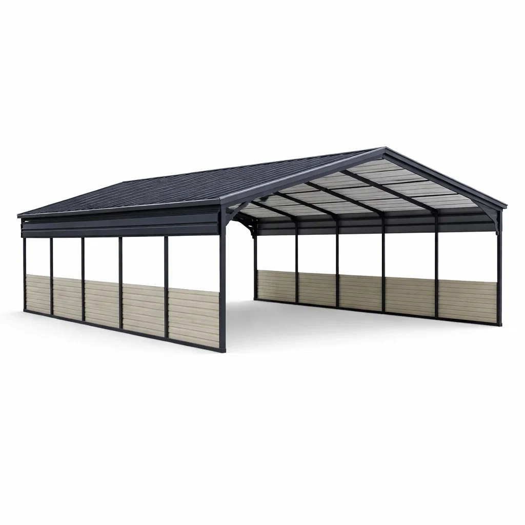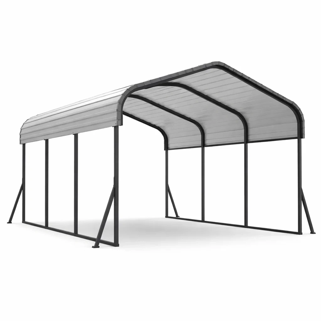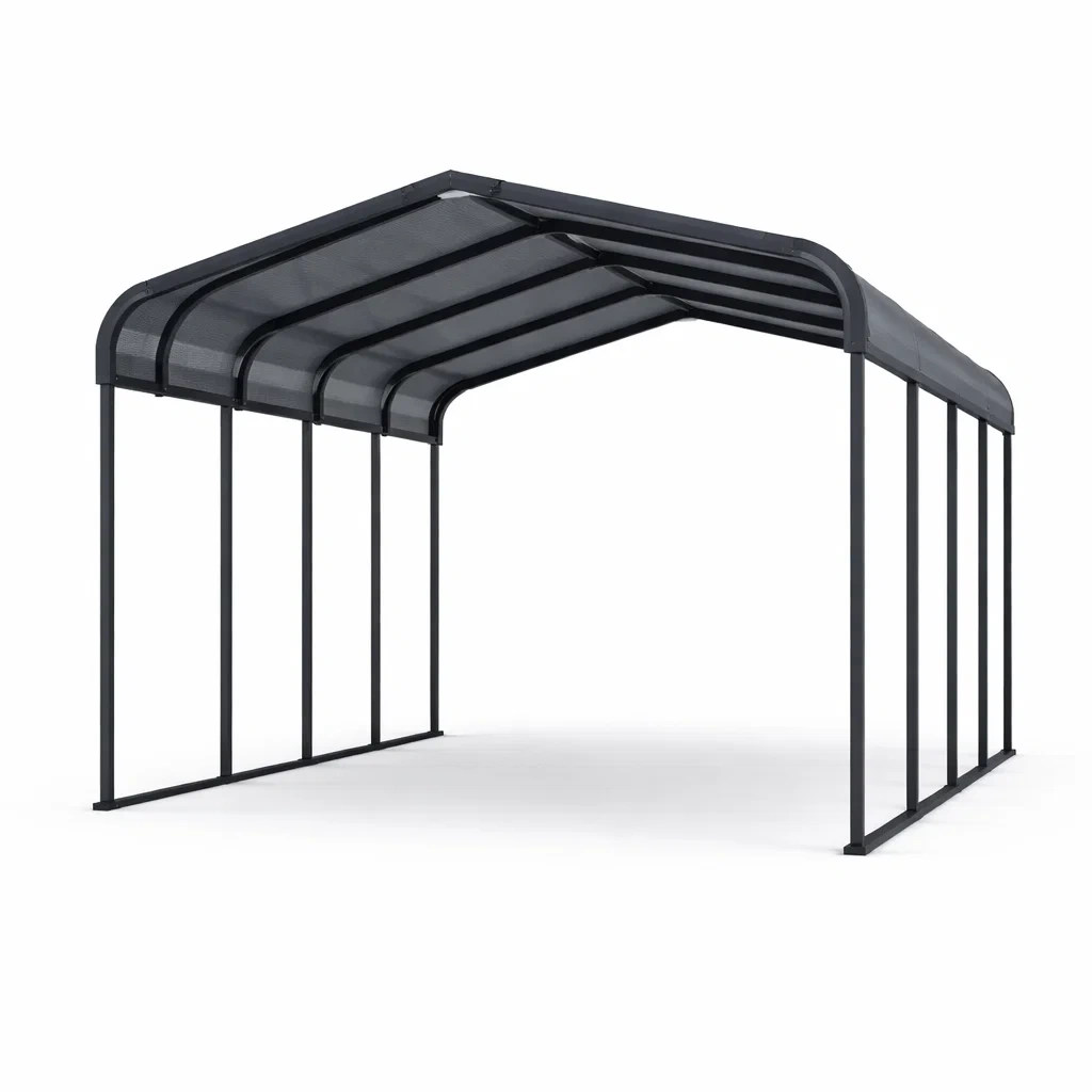 Carport in metallo con rivestimento in acciaio zincato grigio