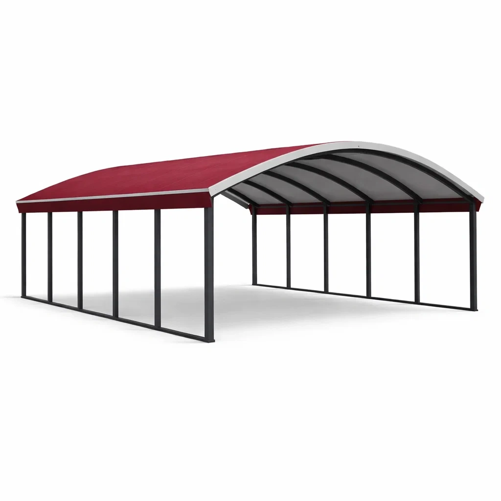 Carport in acciaio con tessuto PVC rosso