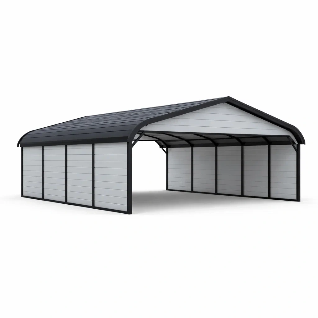 Carport in acciaio con lamiera zincata argento e nero