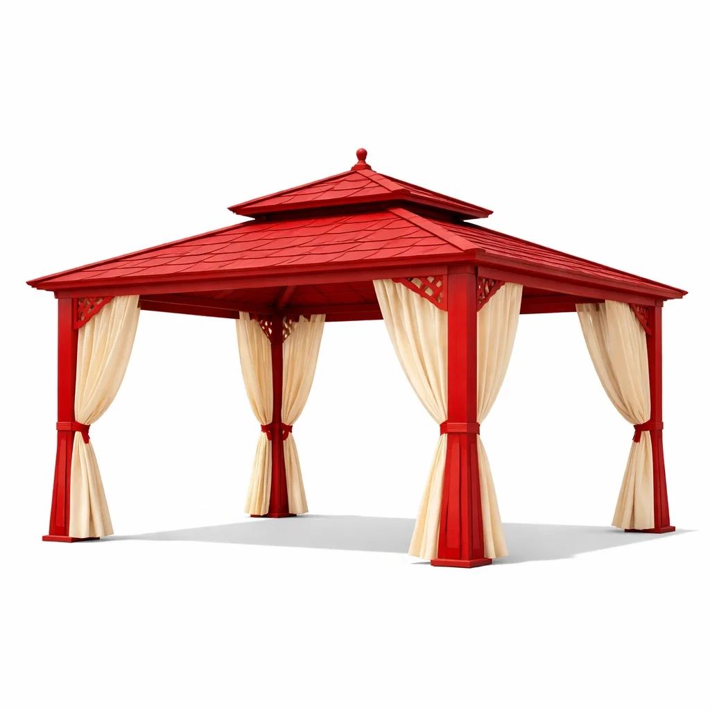 Gazebo in metallo con tetto in acciaio e tende in poliestere