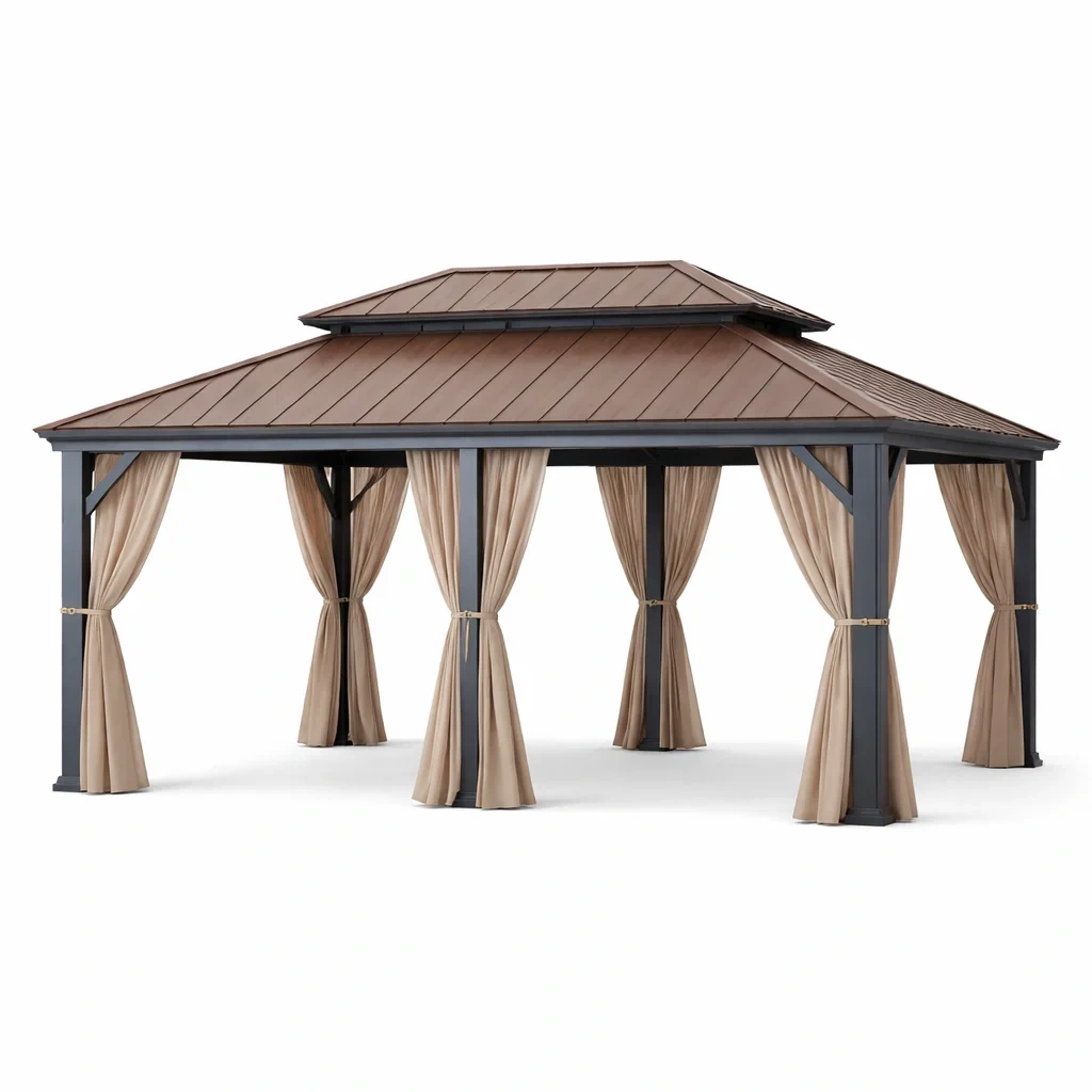 Gazebo in alluminio e poliestere con tetto in acciaio grigio e marrone