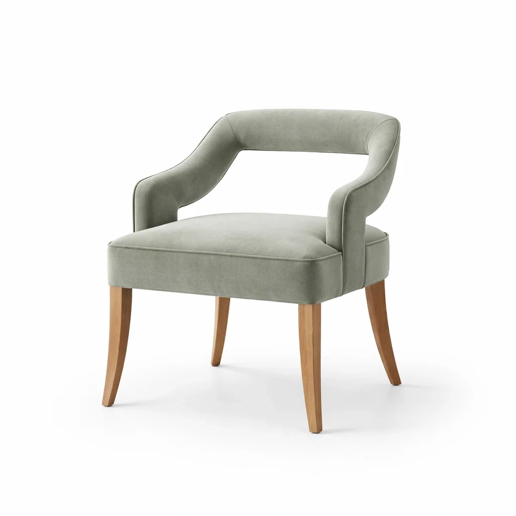 La sedia presenta una struttura in legno di quercia e un rivestimento in tessuto di poliestere verde. Dimensioni: altezza 72 cm, larghezza 55 cm, profondità 55 cm. L'altezza della seduta è di 45 cm. Capacità di peso: 120 kg.