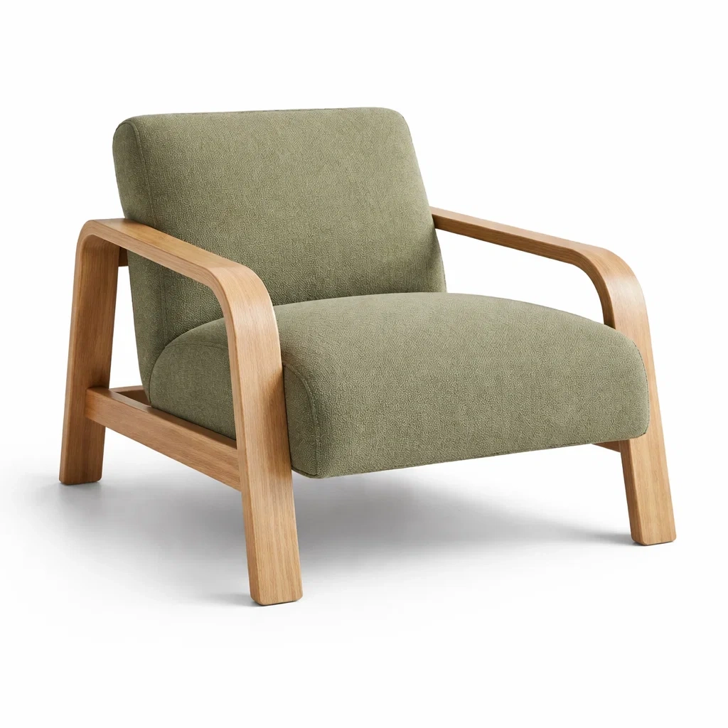 Questa poltrona ha una struttura in legno massello di rovere e una seduta rivestita in tessuto poliestere. Dimensioni: lunghezza 80 cm, larghezza 75 cm, altezza 70 cm. La seduta è riempita con schiuma. Peso netto: 15 kg.